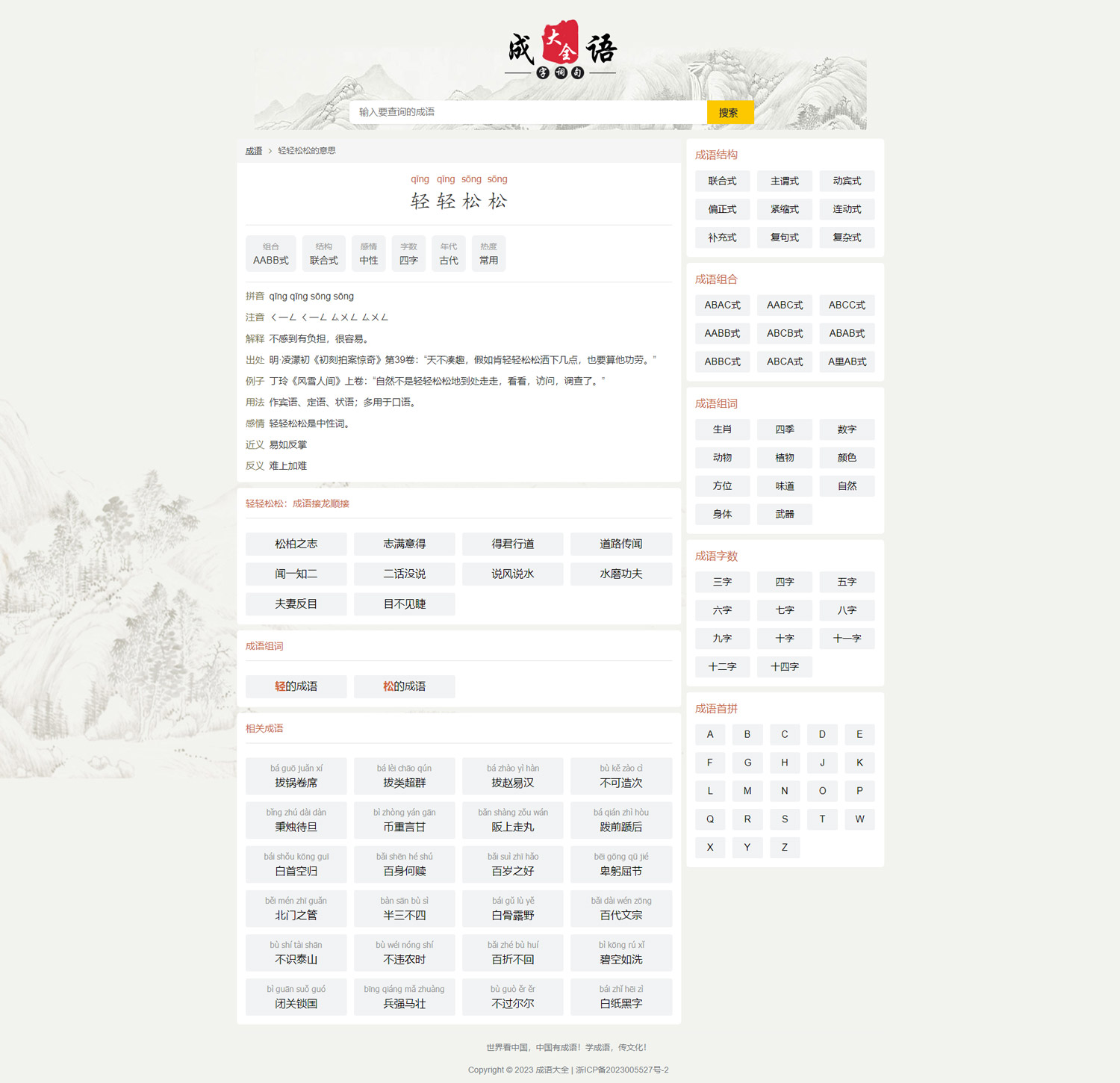 Hi模板网 » 帝国cms7.5自适应HTML5美化版成语大全/成语查询/成语接龙整站源码模板moretag插件
